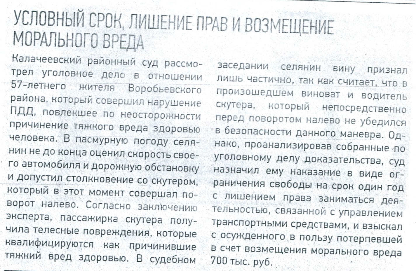 | Статья в газете "Восход" от 17.01.2025 № 2 "Условный срок, лишение прав и возмещение морального вреда" | версия для печати |