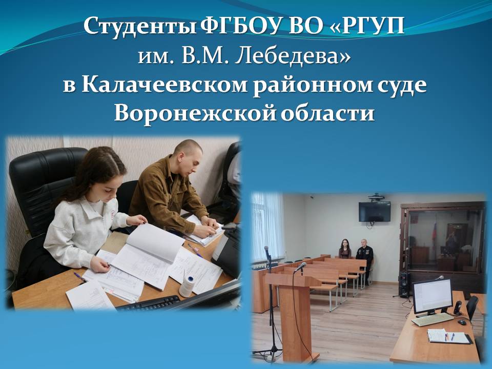 | Студенты ФГБОУ ВО «РГУП имени В.М. Лебедева» в Калачеевском районном суде Воронежской области | версия для печати |